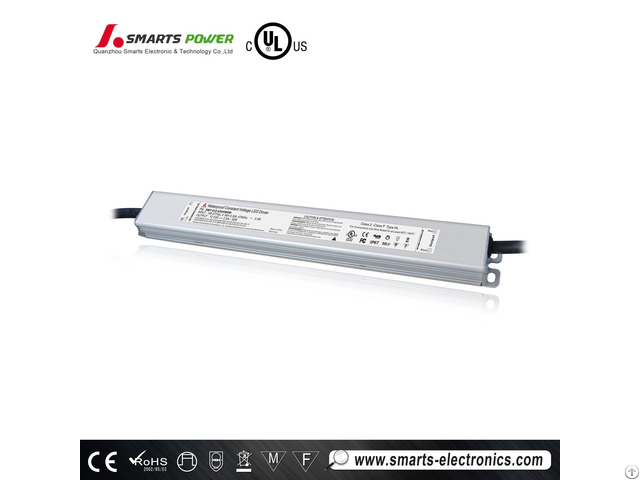 110~277VAC Slim Shape 12volt 30watt Triac dimmable / phase cut dimmable led driver with constant voltage working mode, aluminum case waterproof IP67 for dry and damp installation.