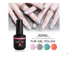 Roniki Fur Effect Gel PolishCosmetics - Nails - Guangzhou RONIKI Beauty Supplies Co.,Ltd - China - November 17, 2019 - contact company for priceRONIKI Fur Effect Gel Polish, Nail Matte Gel Polish, Nail Painting Color Gel, Frosted Surface Gel Polish Product Specification: Brand:RONI KI Color:12 color Volumn:15ml Certifi cates:MSDS, SGS, GMPC, CPNP Type:UV Gel Brand: RONIKI Fur Color Gel Polis...